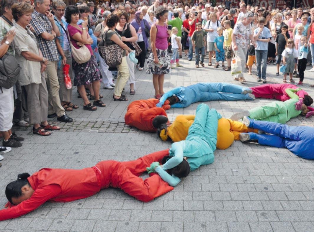 DA MOTUS! propose une rencontre joyeuse avec le public, lors de laquelle les danseurs s’entrelacent et interagissent avec l’architecture urbaine, les spectateurs et les passants. Par une approche ludique, … con tatto encourage l’échange, l’empathie et invite au plaisir du mouvement. Un bal coloré, une danse commune, jubilatoire et spontanée. À Auvernier, le spectacle débute à deux reprises depuis la Place du Millénaire.